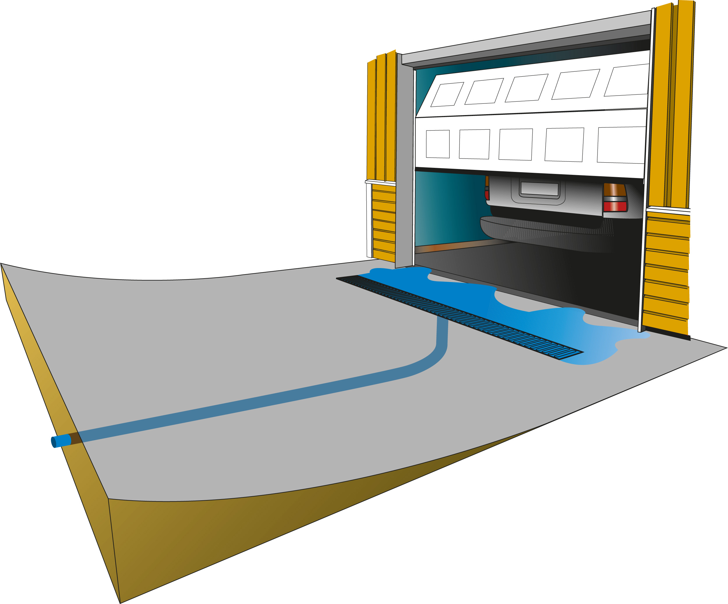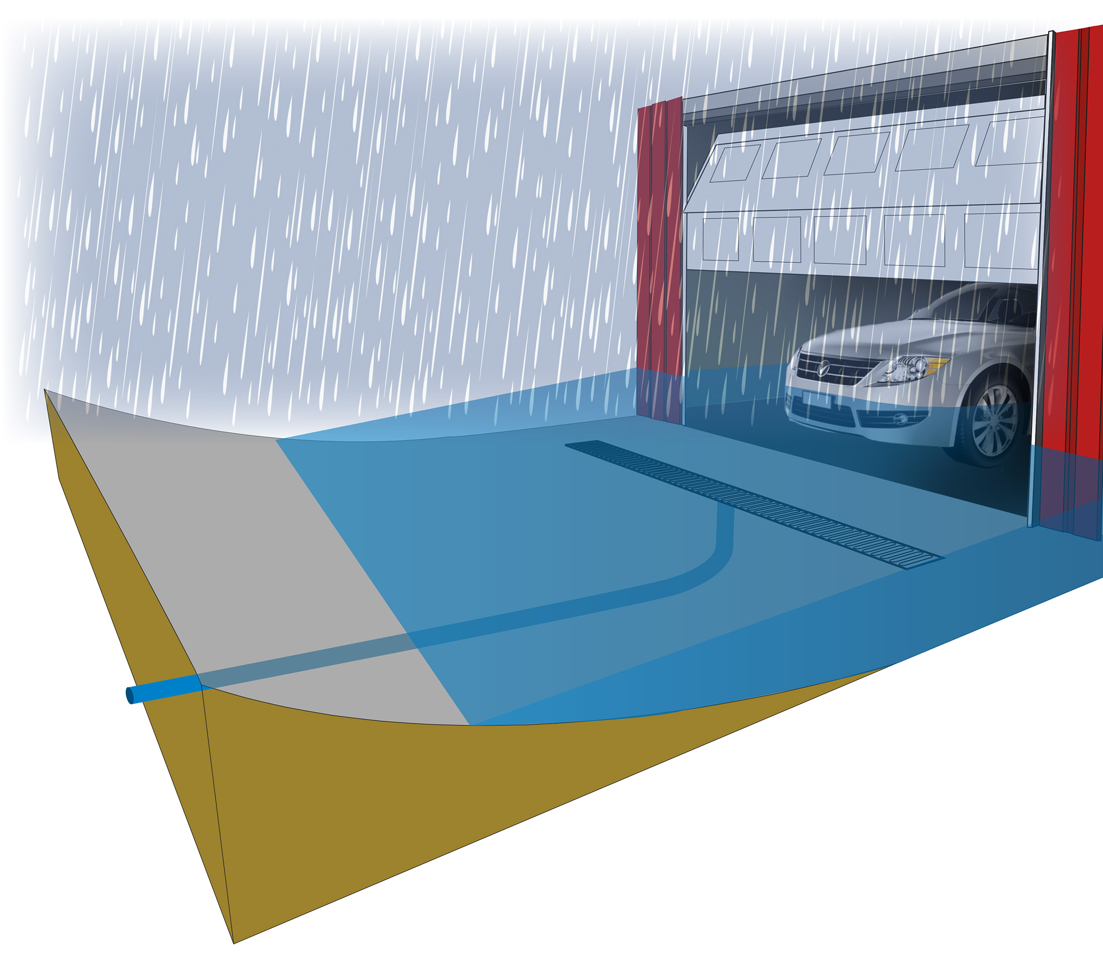 Bild 3. Genom att hindra tillrinning av dagvatten till källartrappan tar man bort behovet av avledning och spygatten kan gjutas igen. Då kan vatten inte tryckas upp baklänges via spygatten och orsaka översvämning.