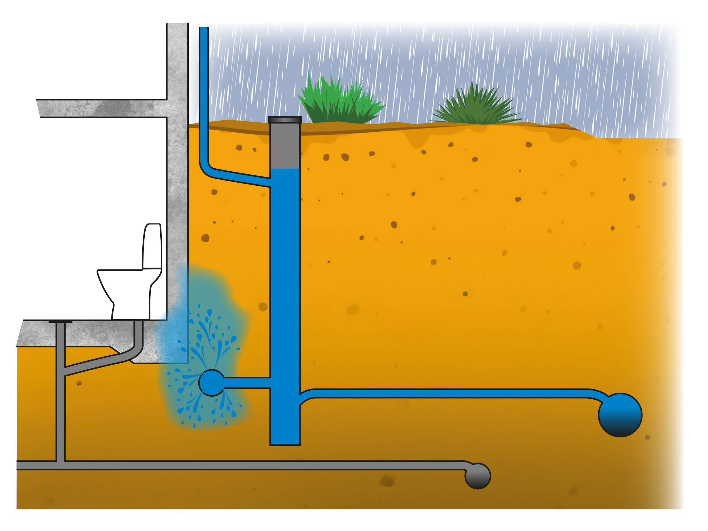 I många källartrappor och garagenedfarter sitter en spygatt. En spygatt är en brunn utan vattenlås. Dagvattennätet dämmer upp i gatunivå vid kraftiga regn. Finns det en spygatt eller andra fria avloppsöppningar under gatunivå kommer vatten att tränga upp genom dessa när ledningen i gatan är full. Du kan skydda dig mot detta på olika sätt.